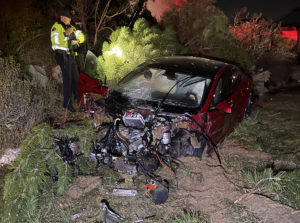 The car didn’t stop there — it flew down the 30-foot drop.
