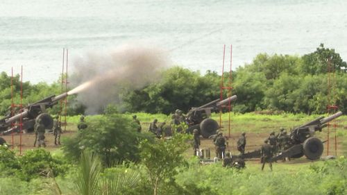 On Tuesday, its navy held live-fire artillery drills in Pingtung County on its southeastern coast.