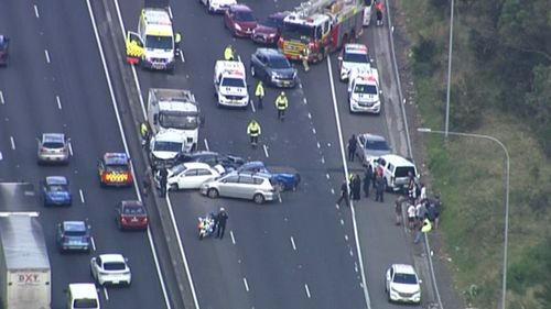 An individual is trapped after eight automobiles have been concerned in a crash with a truck on the M4 in Sydney's west.