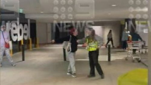 A lady has been arrested after she allegedly spat on and punched a safety guard at a busy procuring centre in Melbourne.